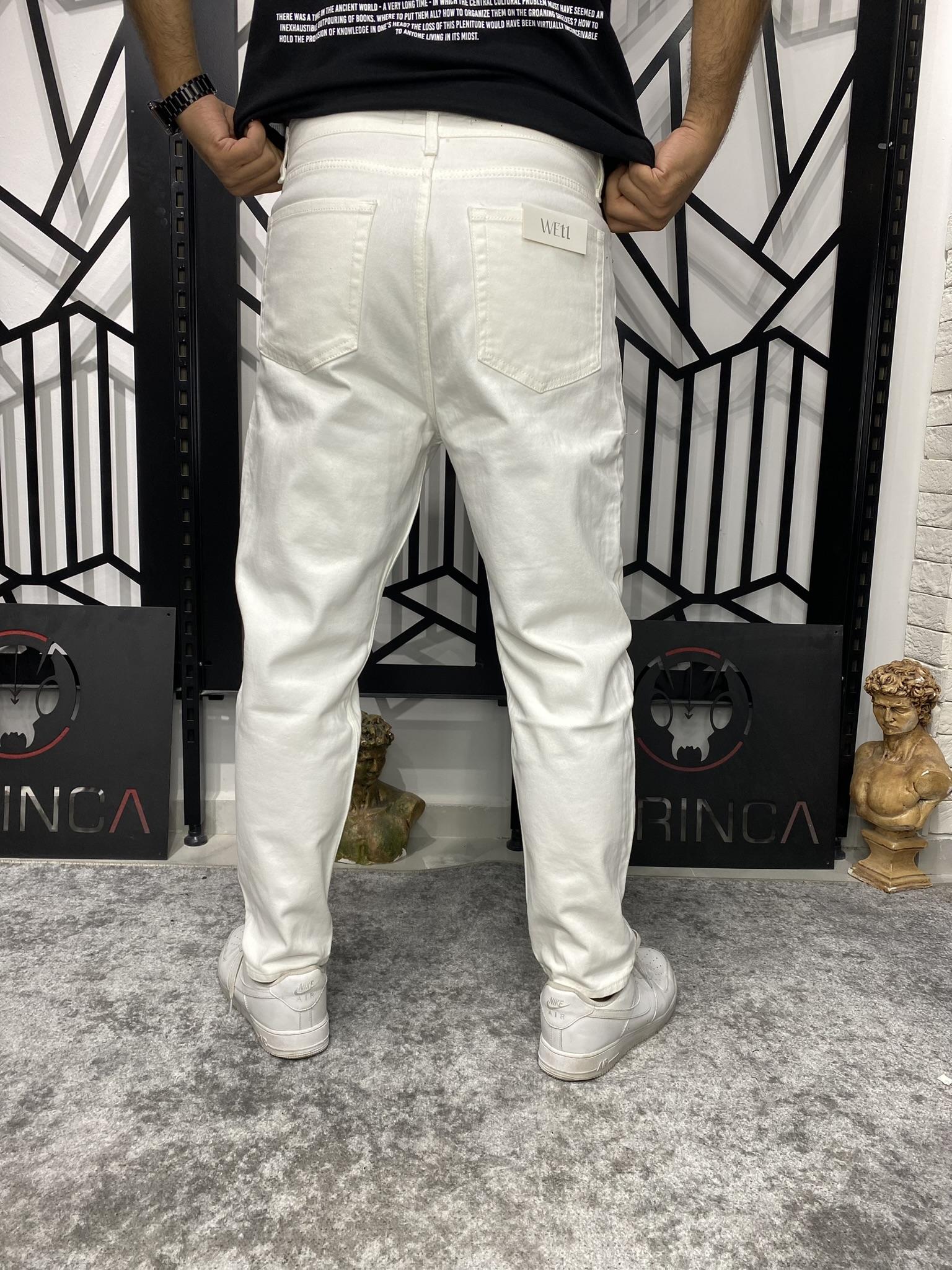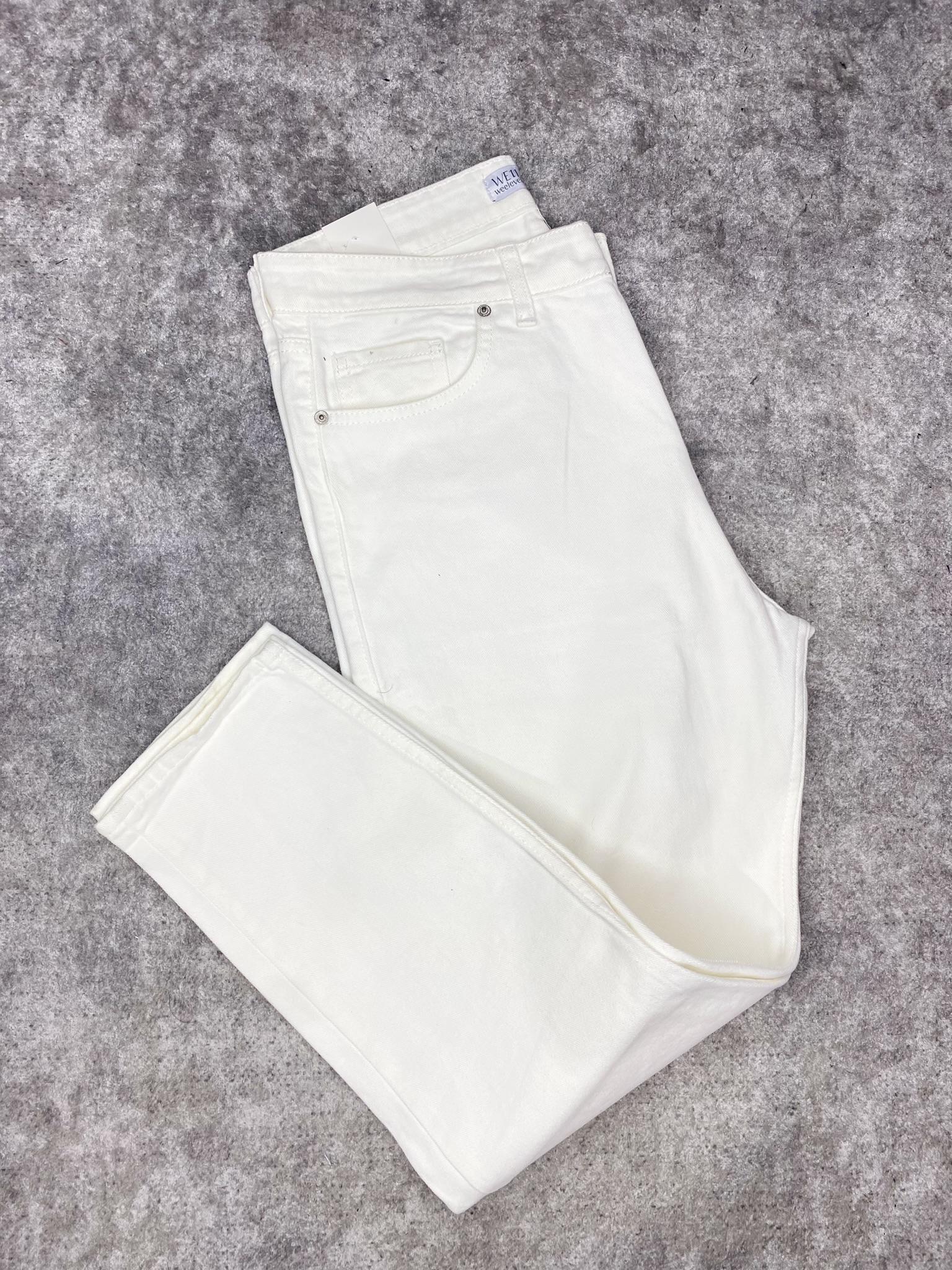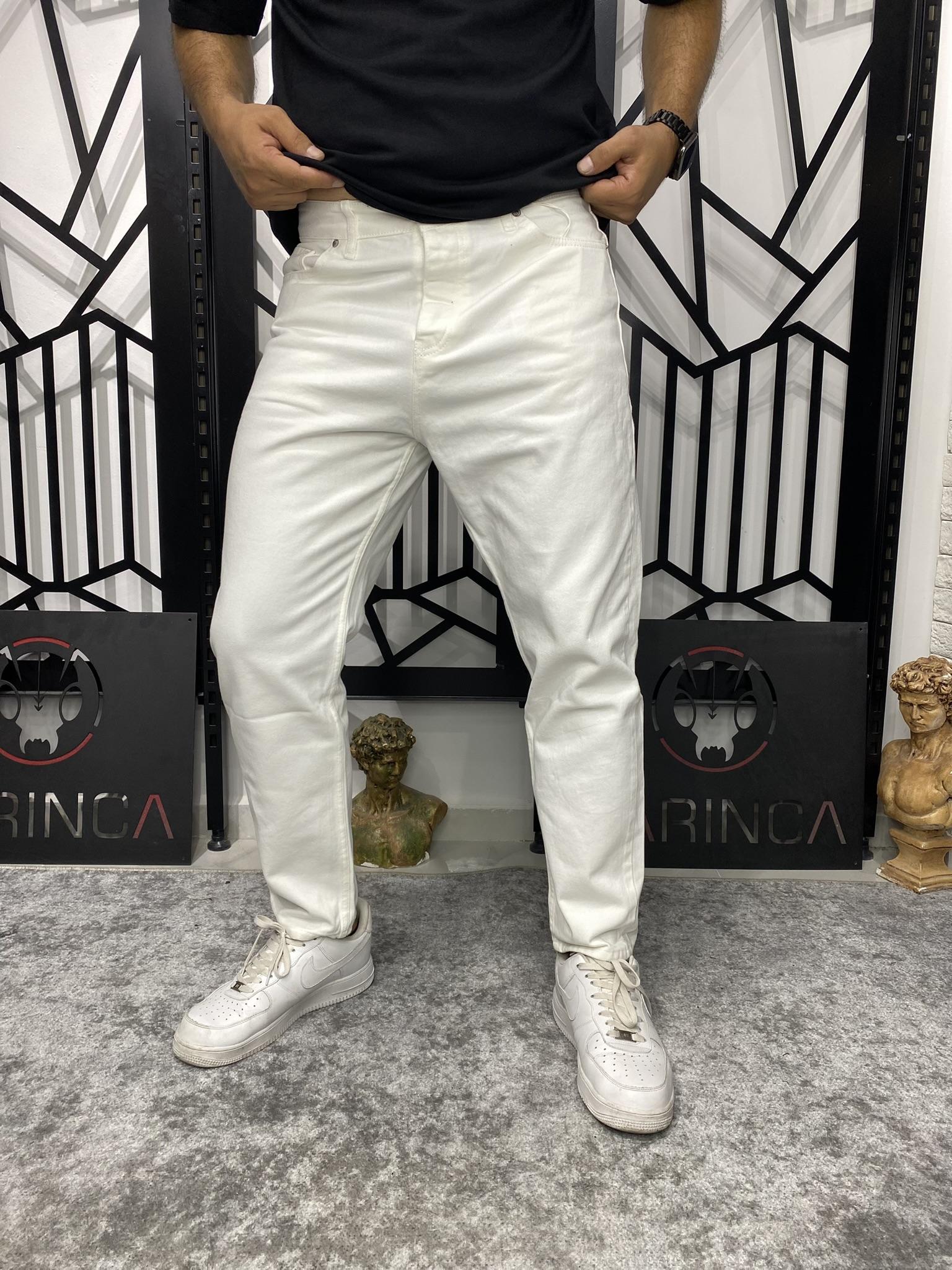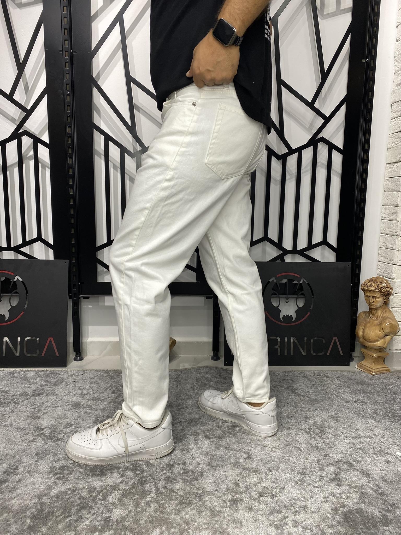 Beyaz Basic Boyfriend Kalıp Karot Kesim Havuç Model Kot Pantolon
