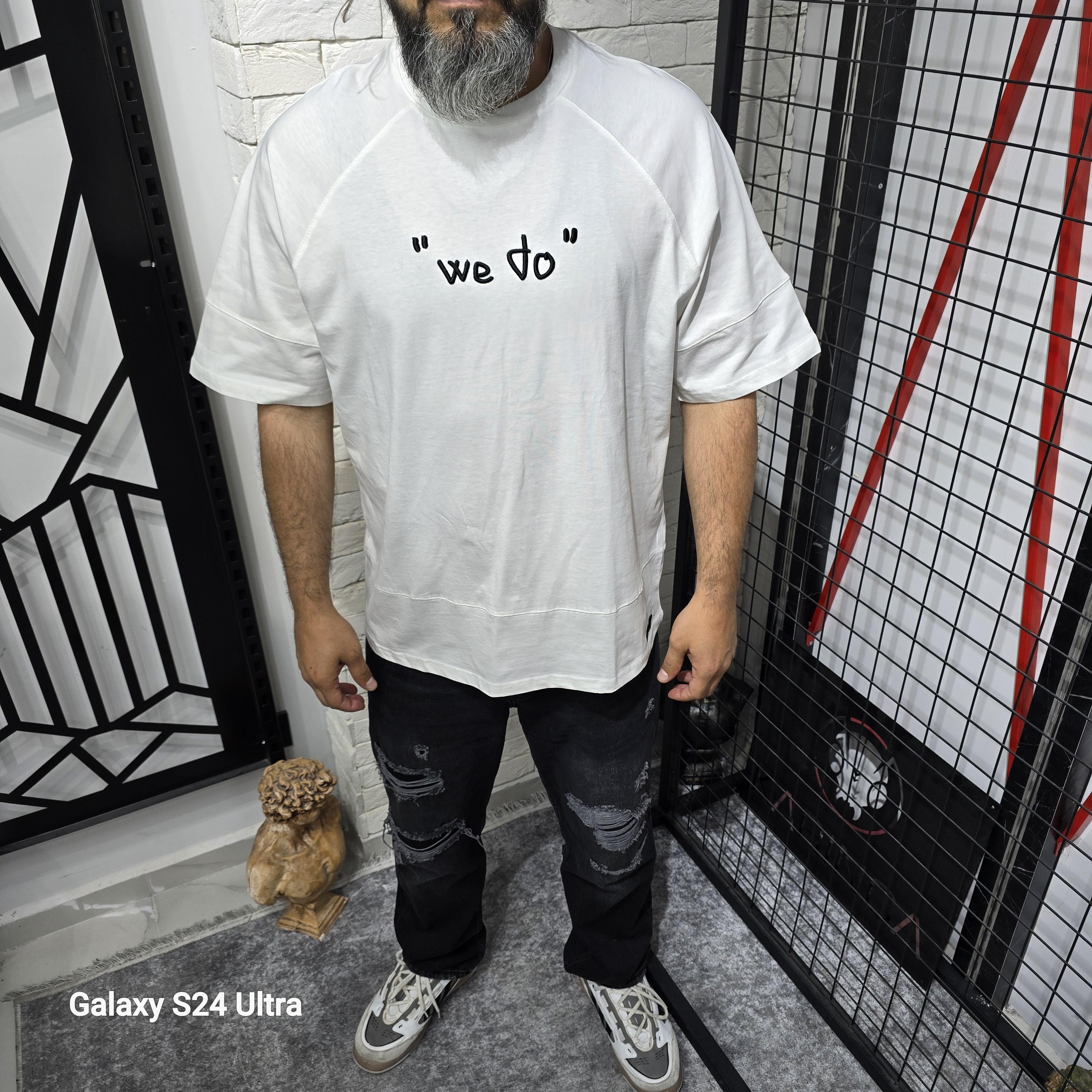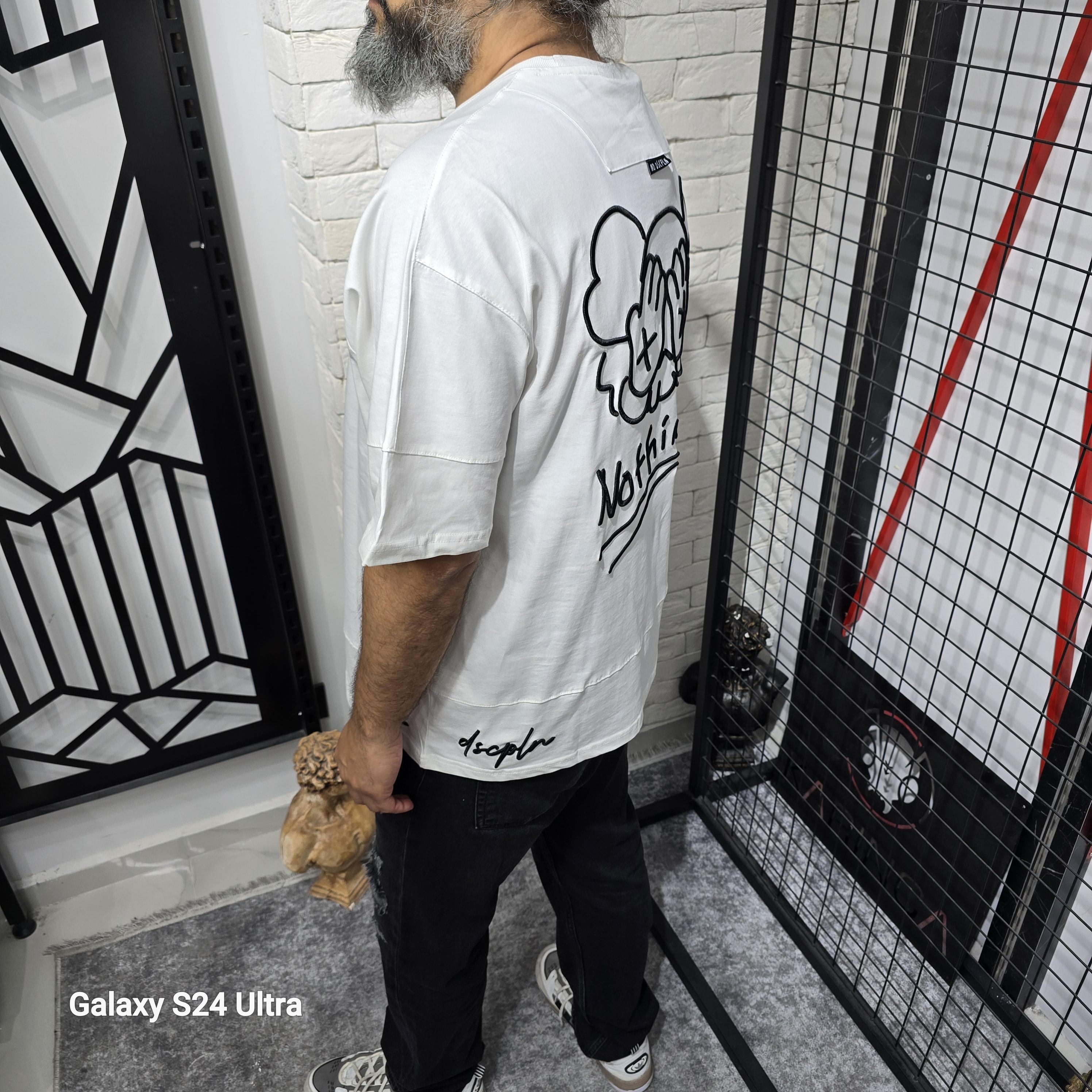 Beyaz İki İplik Baskılı T-Shirt
