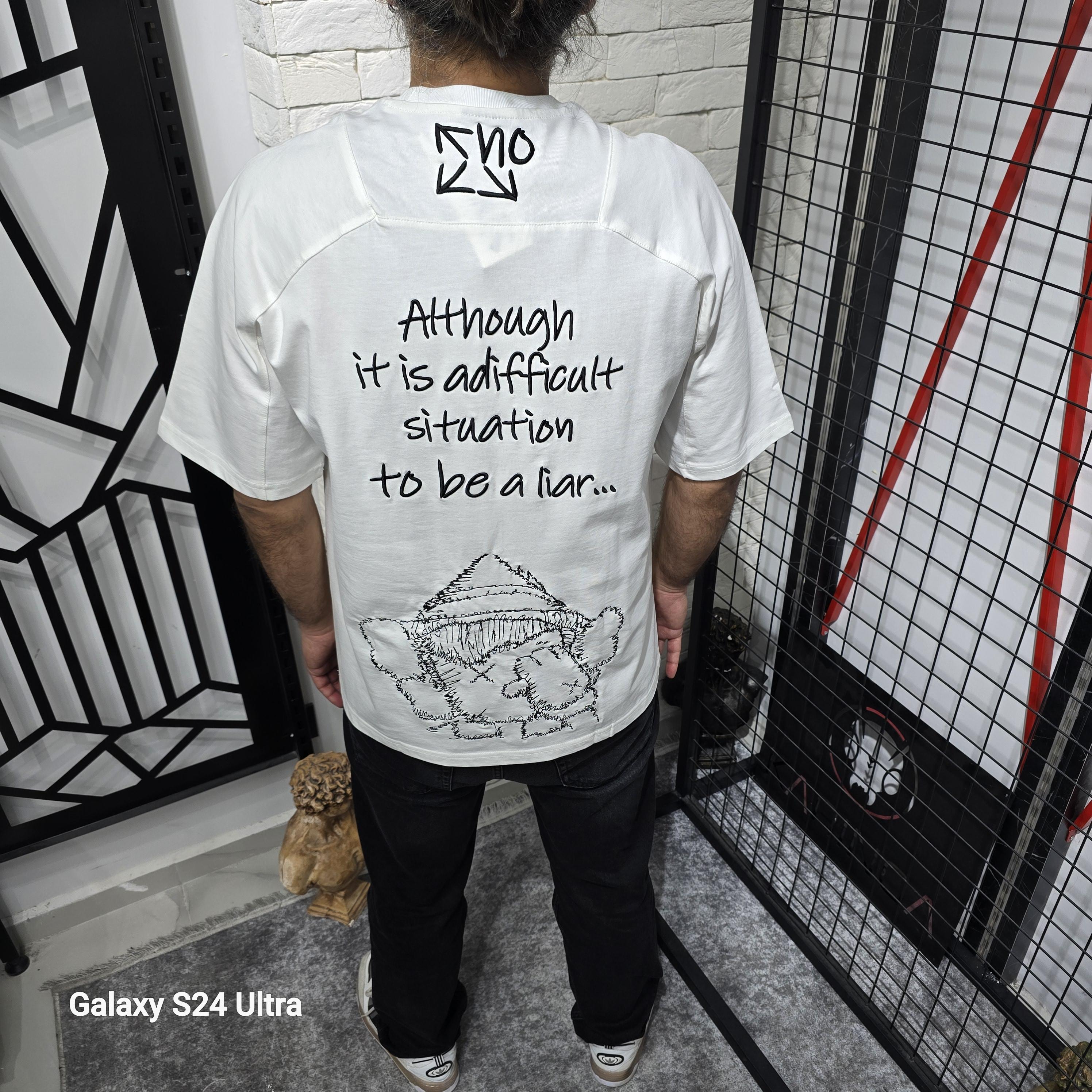 Oversize Nakış Baskılı İki İplik T-Shirt