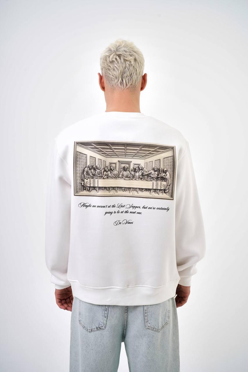 Da Vinci'nin Son Akşam Yemeği Tablosunu Baskılı Oversize Bisiklet Yaka Sweatshirt