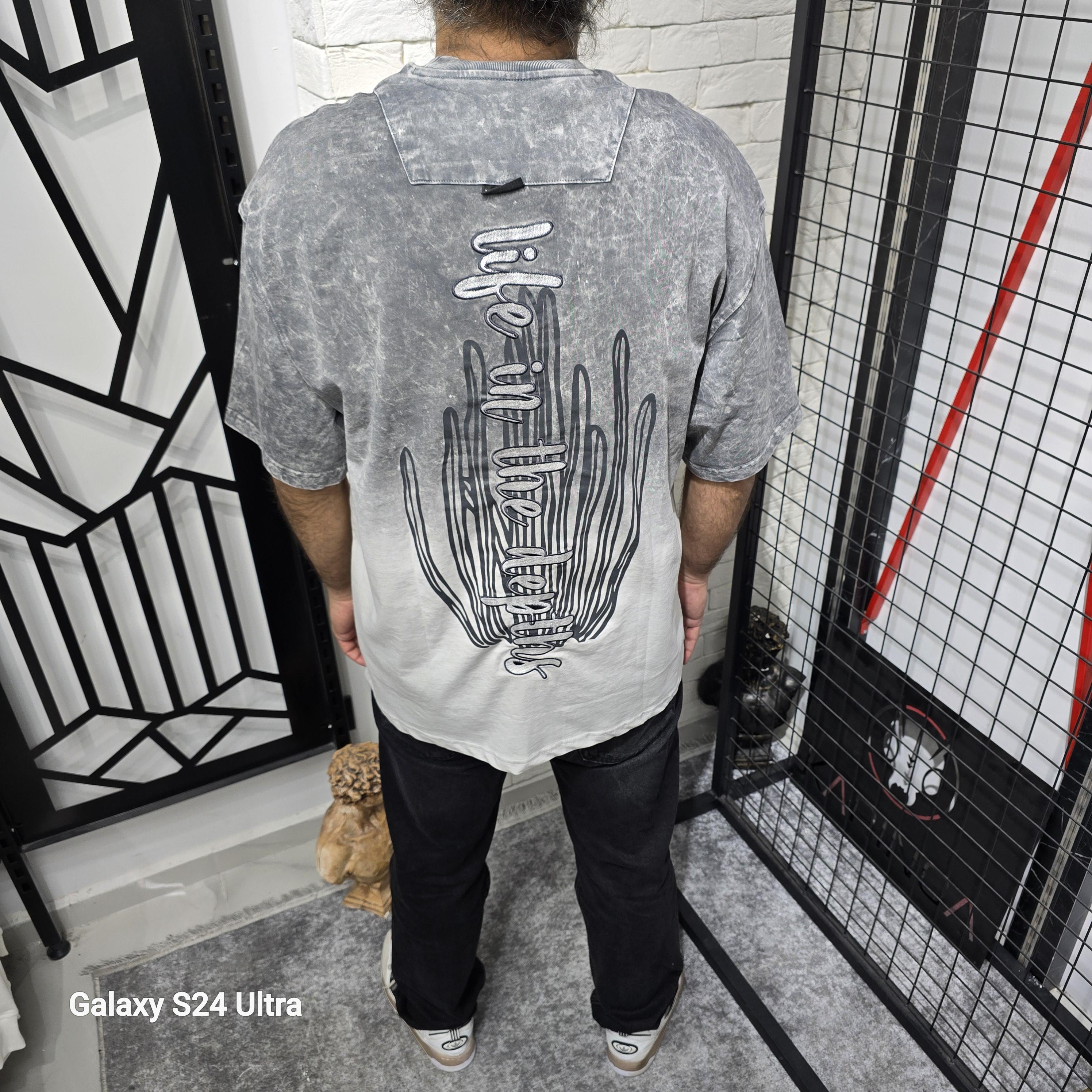 Gri (Life İn The Depths) Baskılı Yıkamalı Kumaş T-Shirt