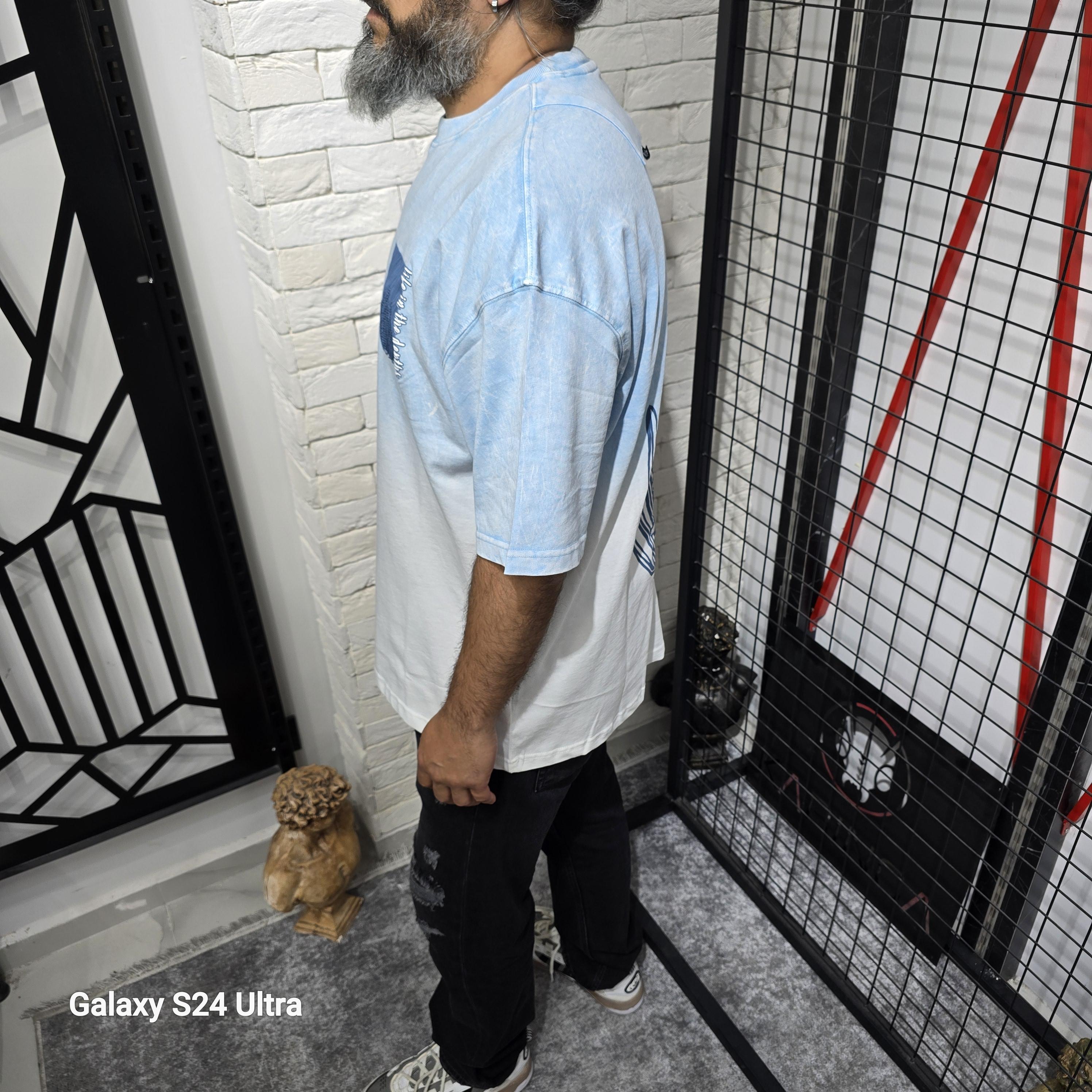 Mavi (Life İn The Depths) Baskılı Yıkamalı Kumaş T-Shirt