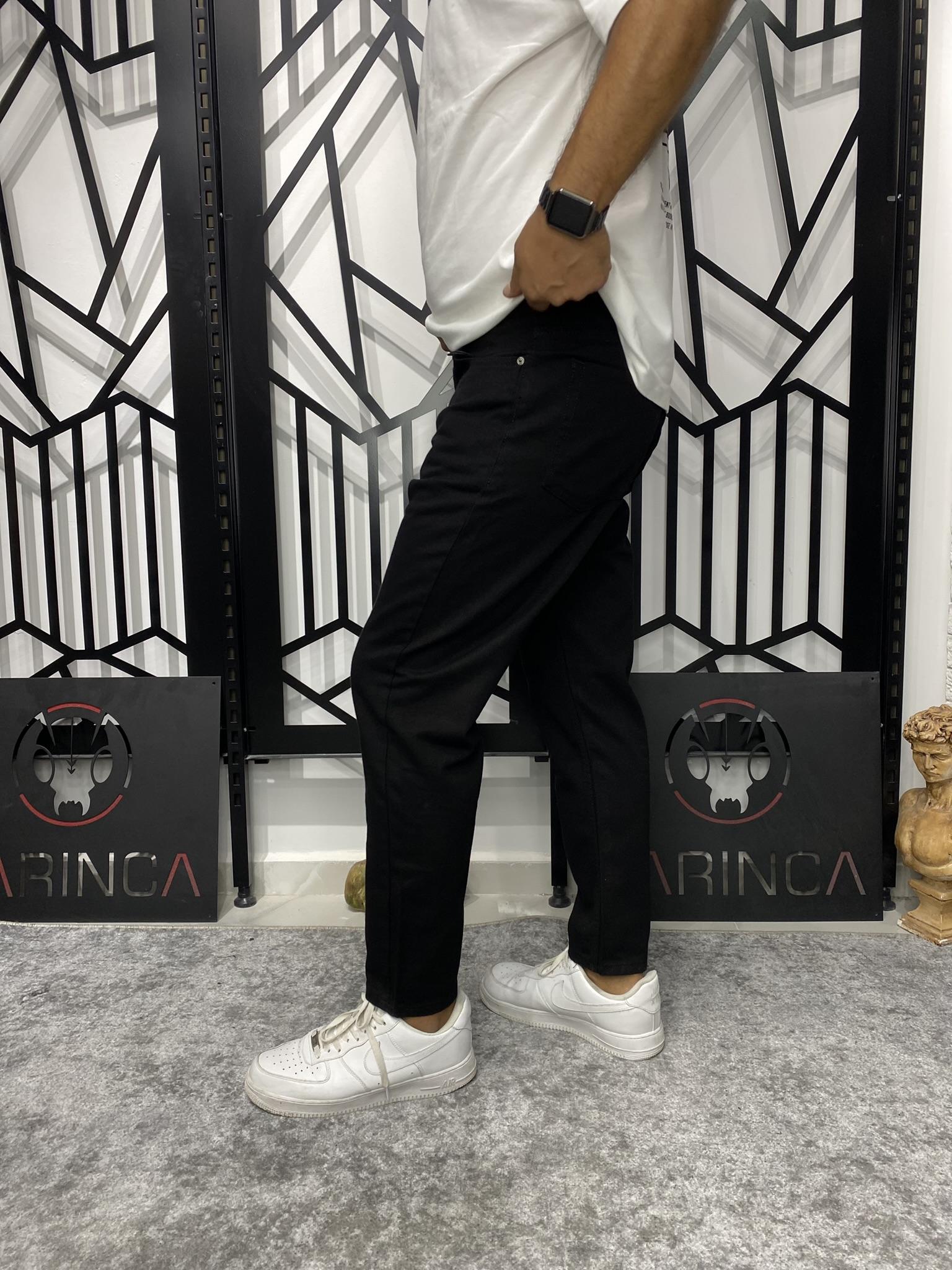 Siyah Basic Boyfriend Kalıp Karot Kesim Havuç Model Kot Pantolon