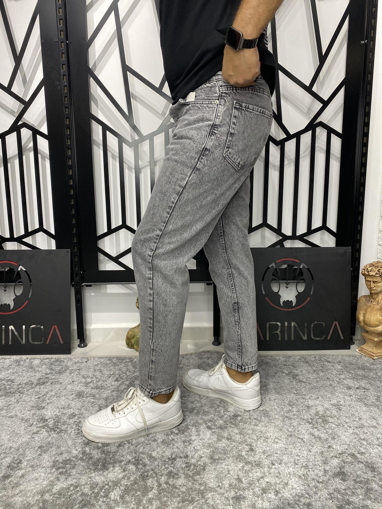 Yıkamalı Gri Boyfriend Kalıp Karot Kesim Havuç Model Kot Pantolon