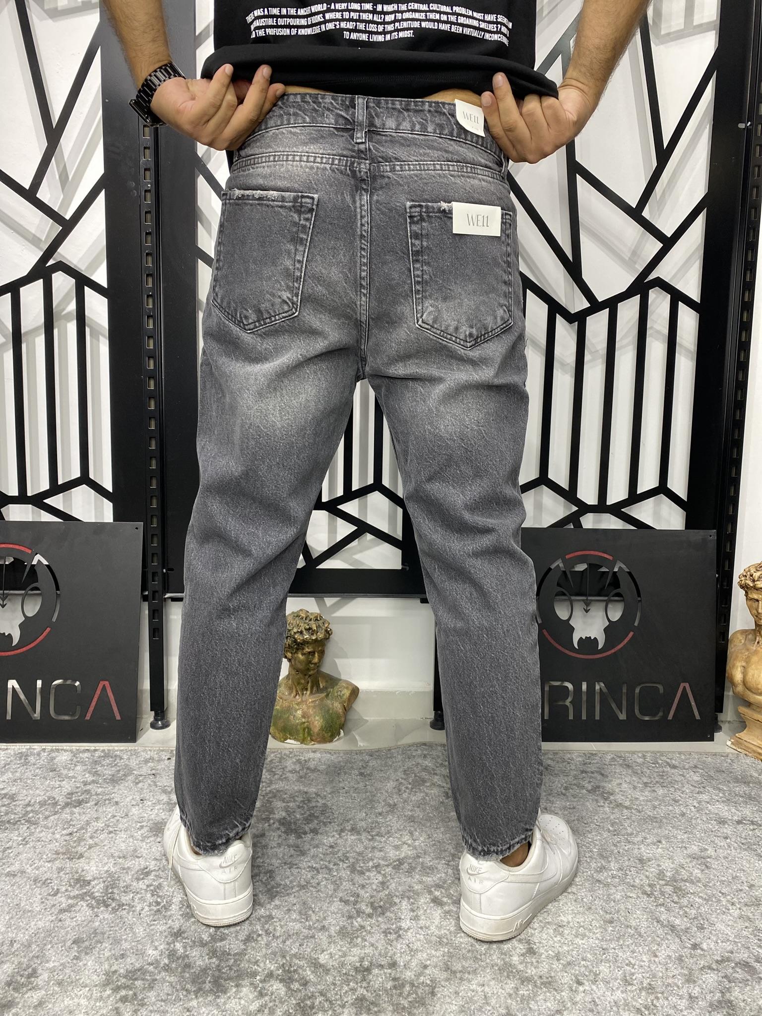 Yıkamalı Koyu Gri Boyfriend Kalıp Karot Kesim Havuç Model Kot Pantolon