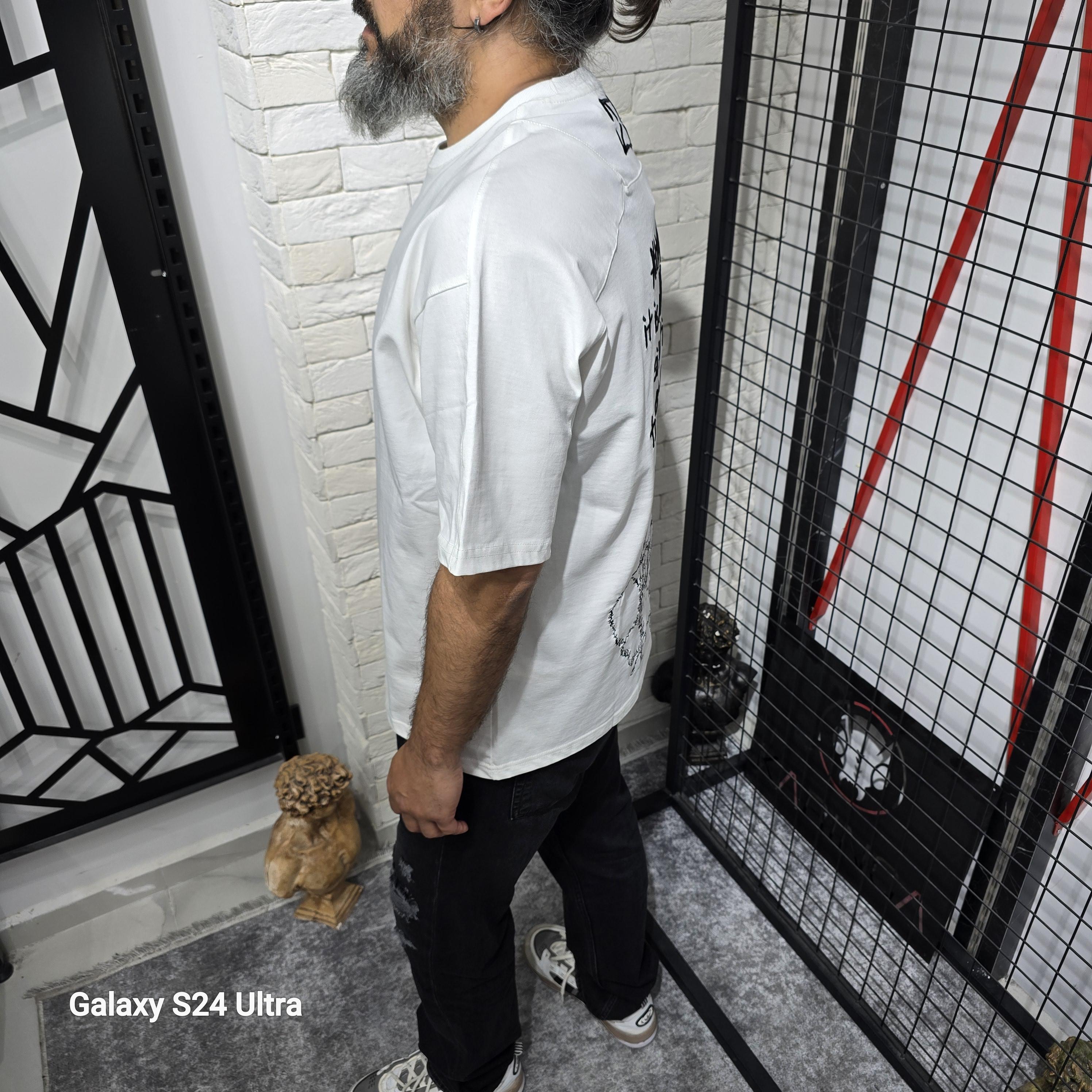 Oversize Nakış Baskılı İki İplik T-Shirt