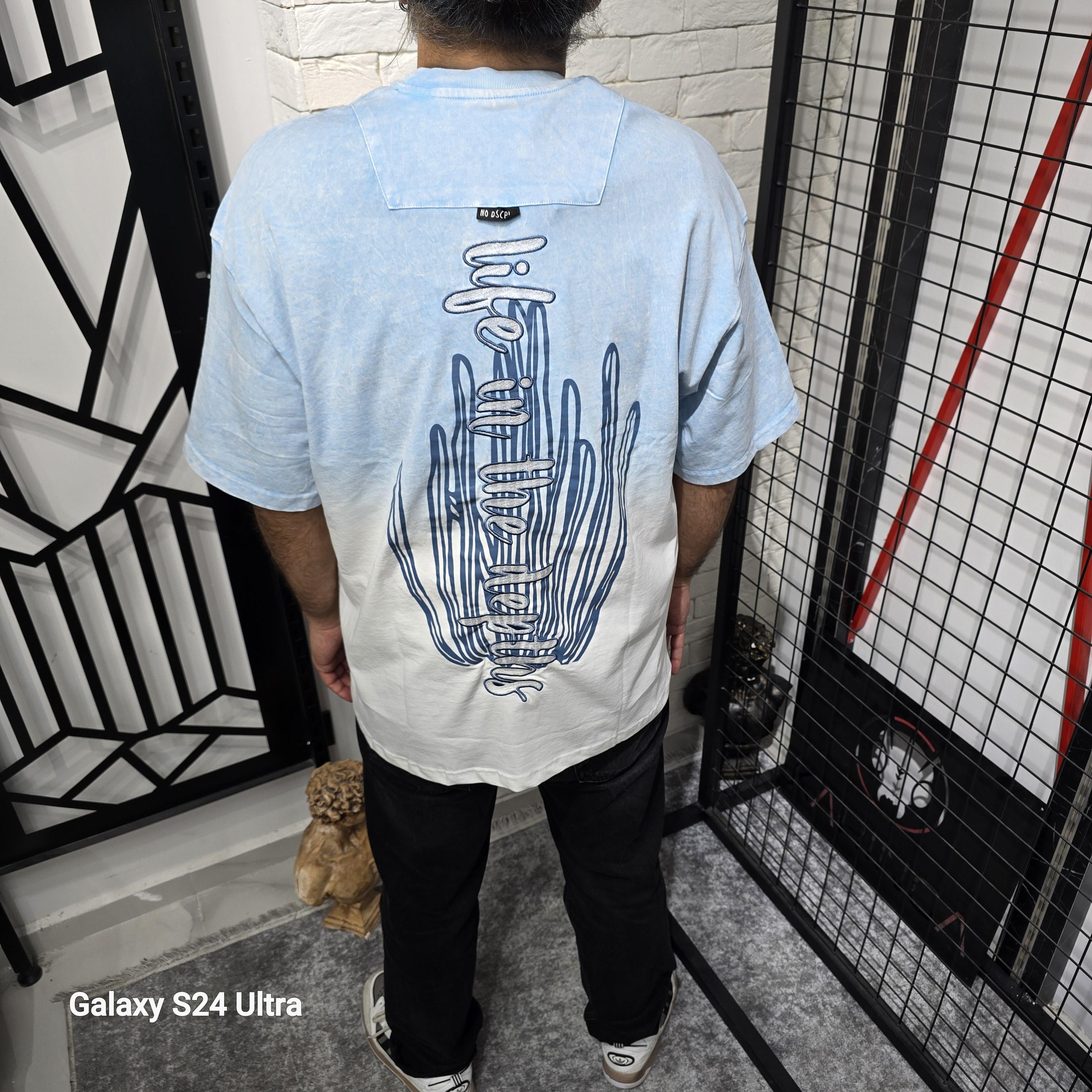 Mavi (Life İn The Depths) Baskılı Yıkamalı Kumaş T-Shirt
