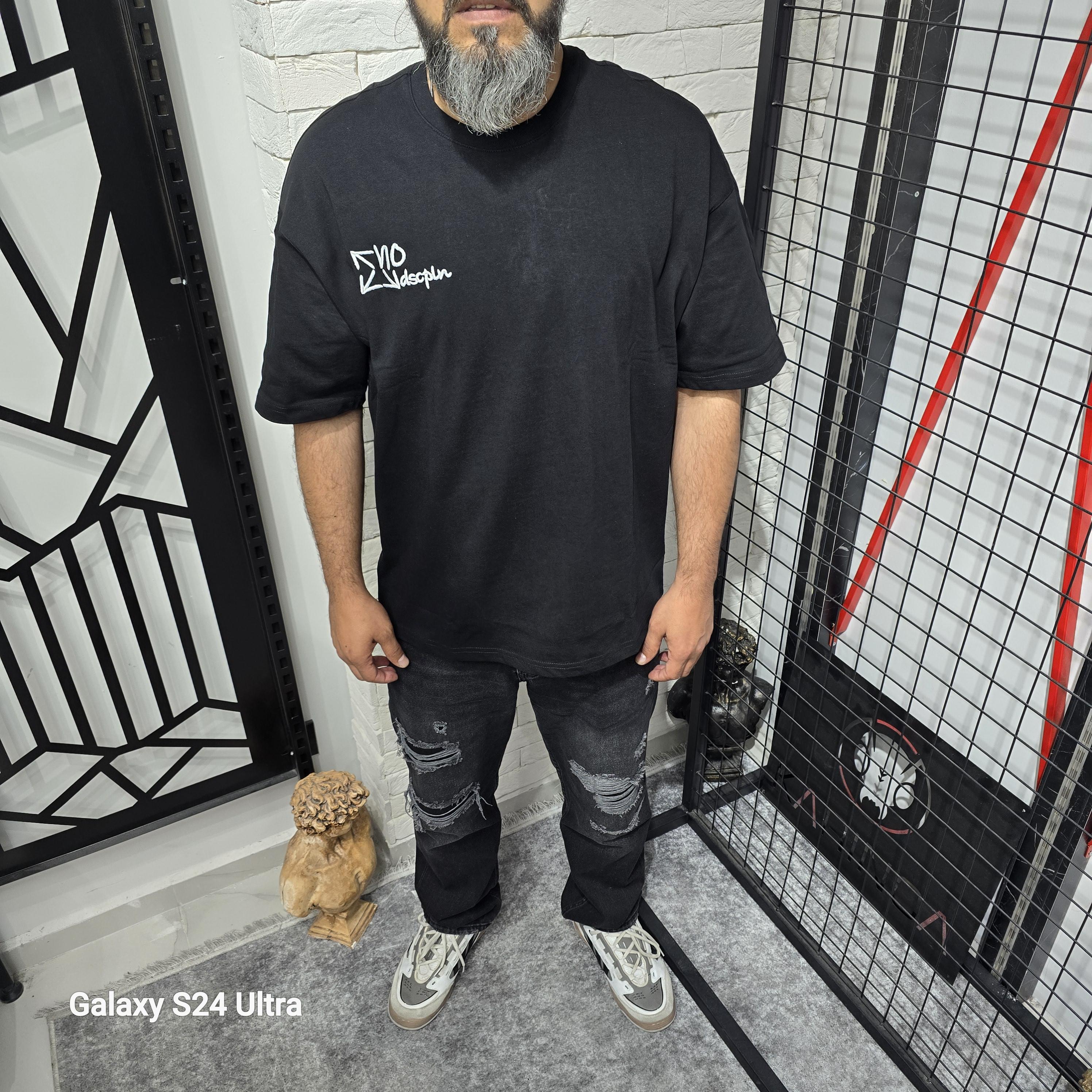 Siyah Nakış Baskılı T-Shirt