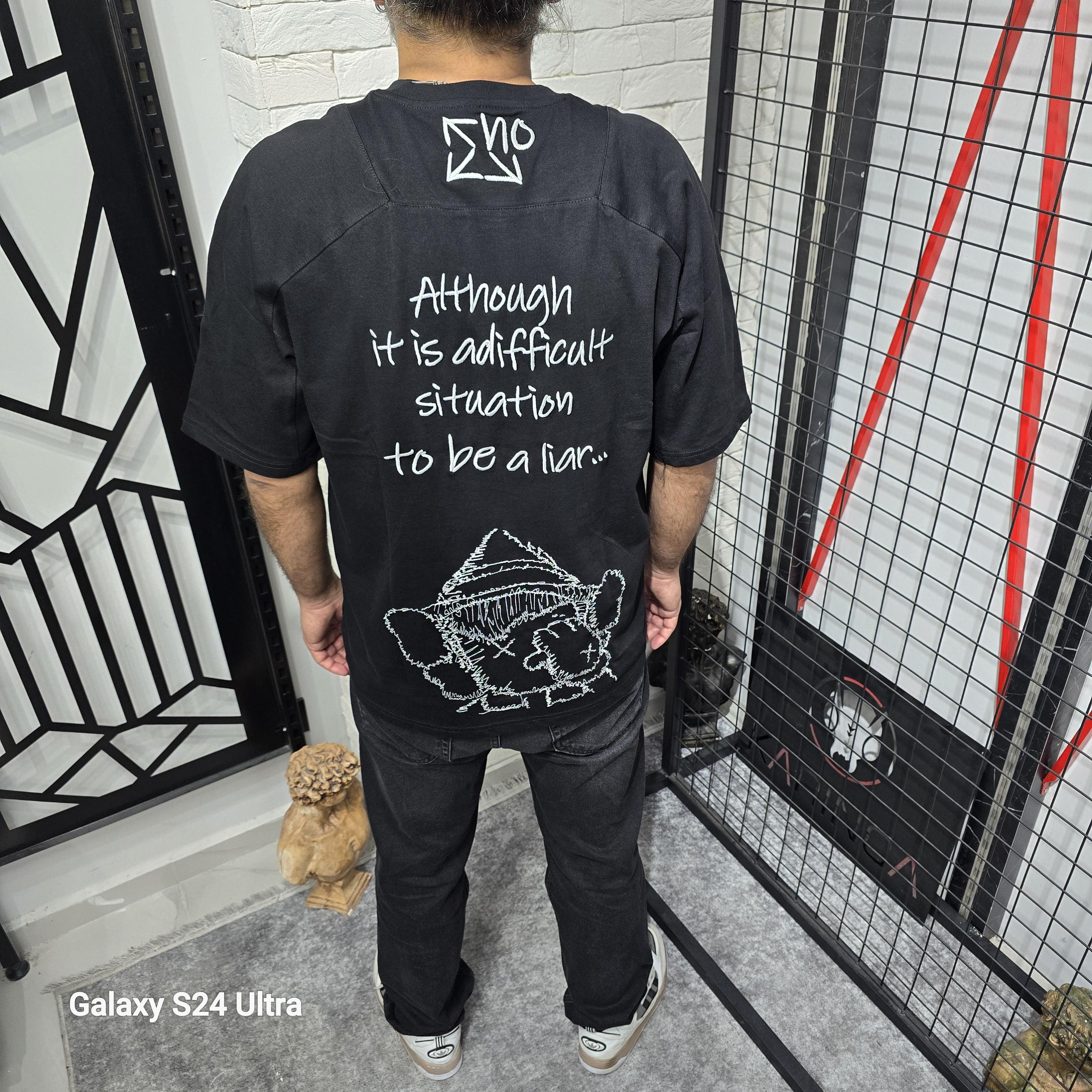 Oversize Nakış Baskılı İki İplik T-Shirt