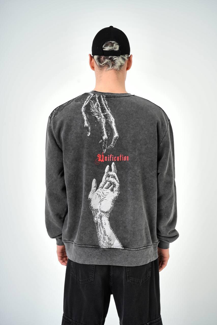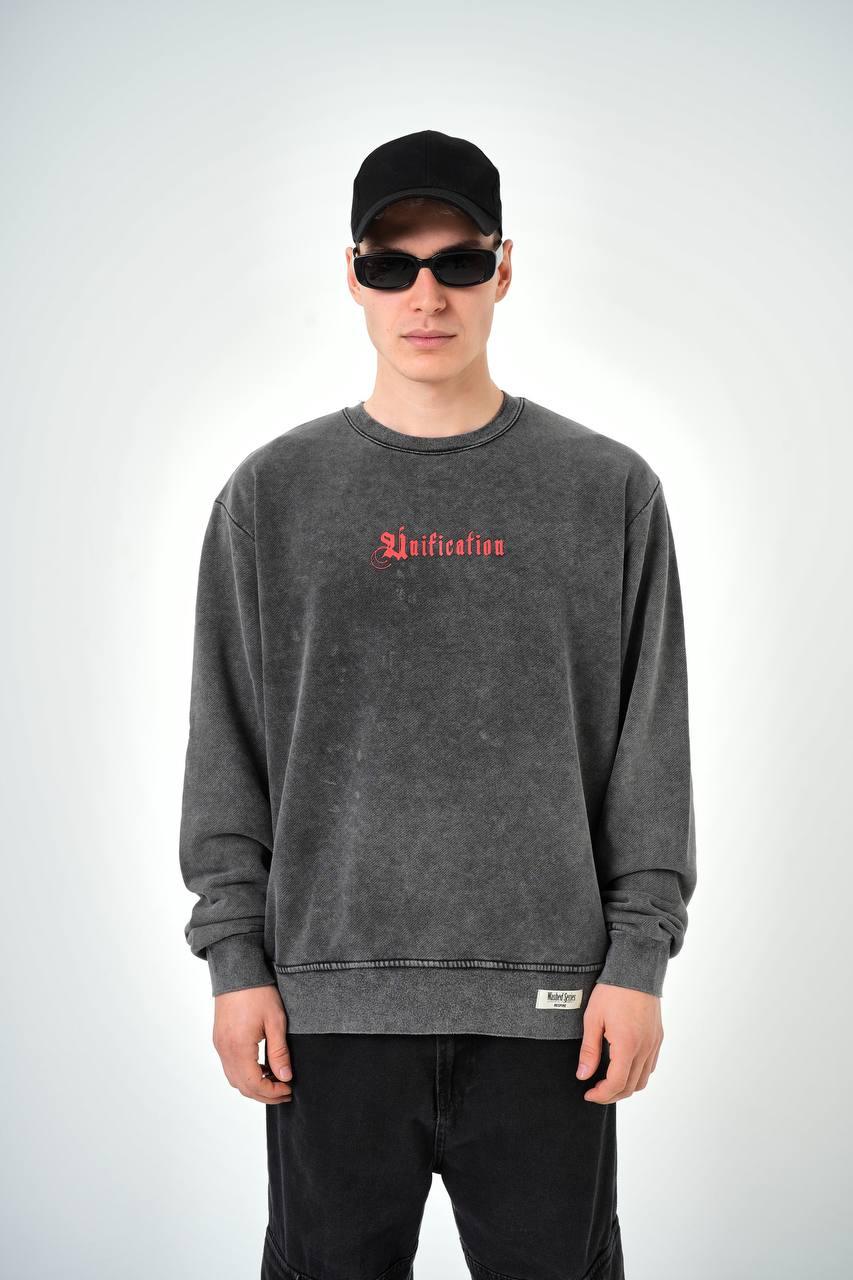 Unification Baskılı Oversize Yıkamalı Sweatshirt RK-101486