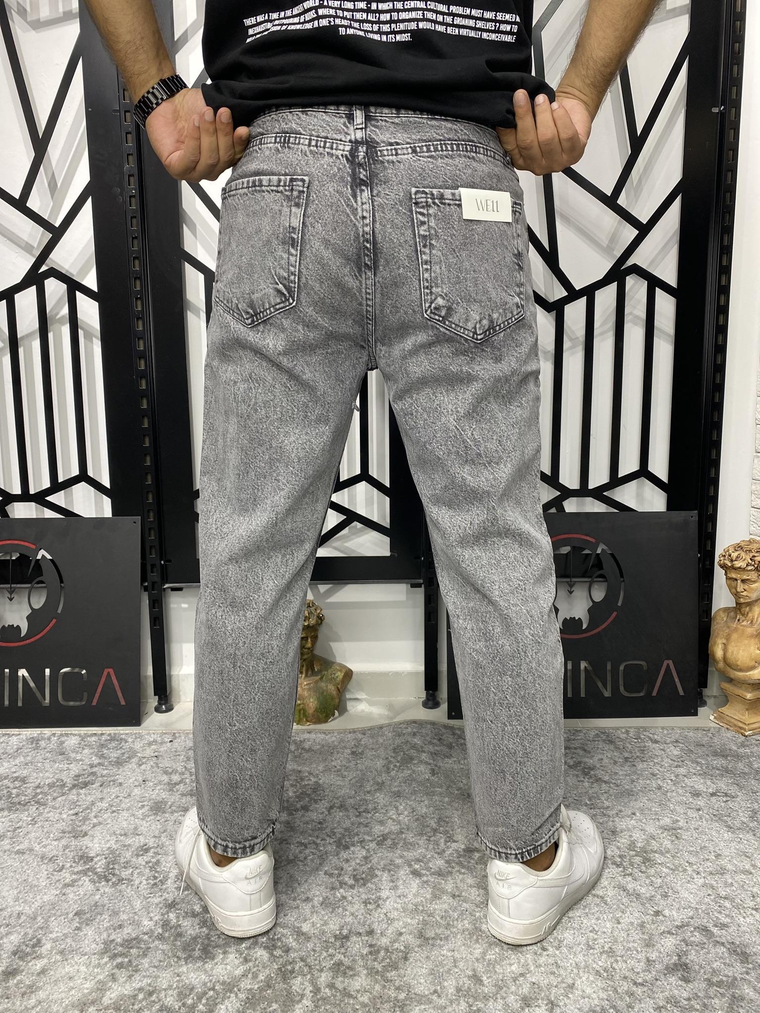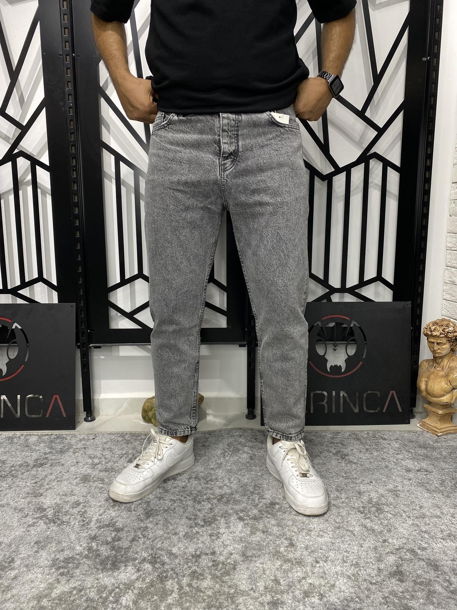 Yıkamalı Gri Boyfriend Kalıp Karot Kesim Havuç Model Kot Pantolon
