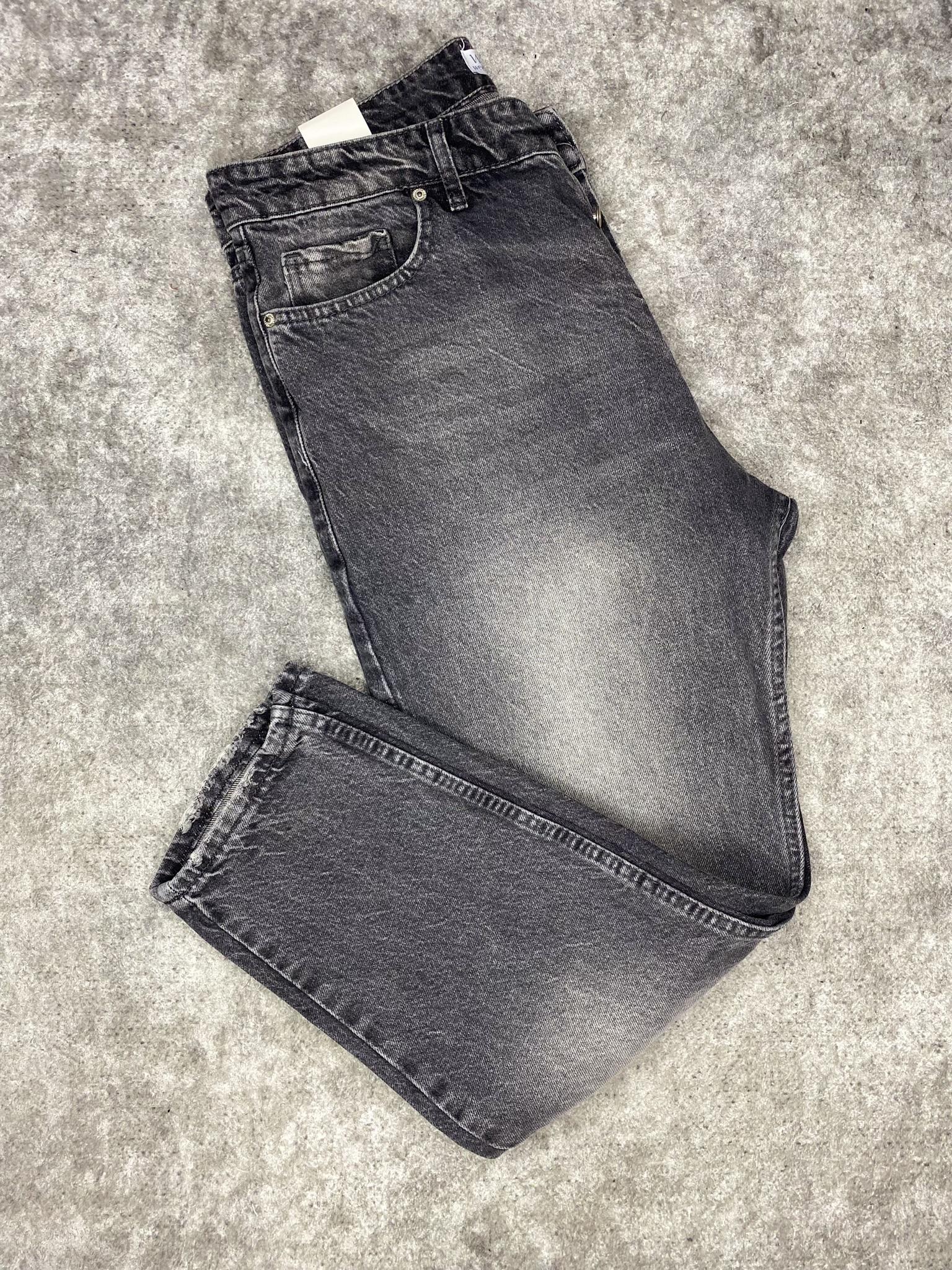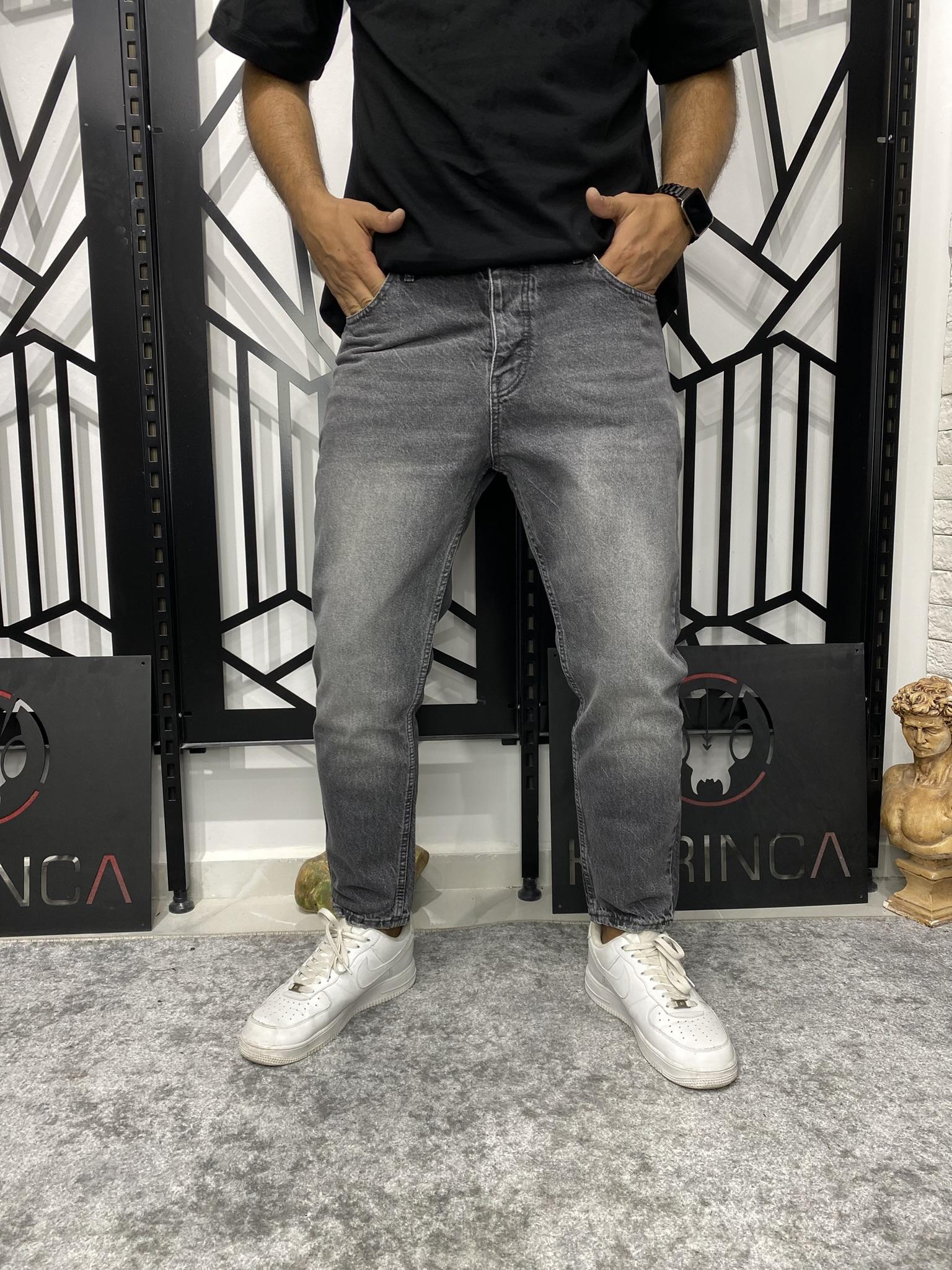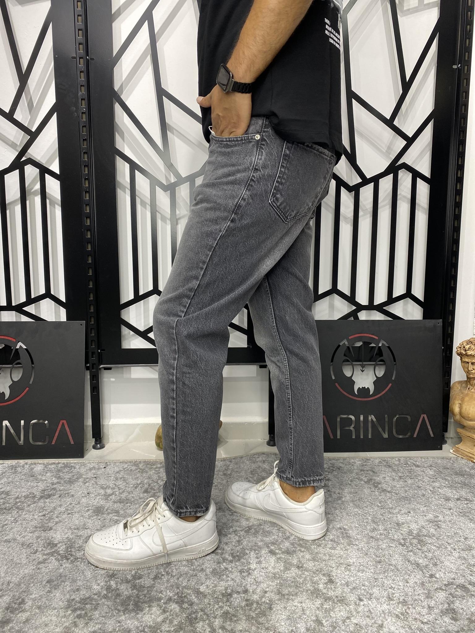 Yıkamalı Koyu Gri Boyfriend Kalıp Karot Kesim Havuç Model Kot Pantolon